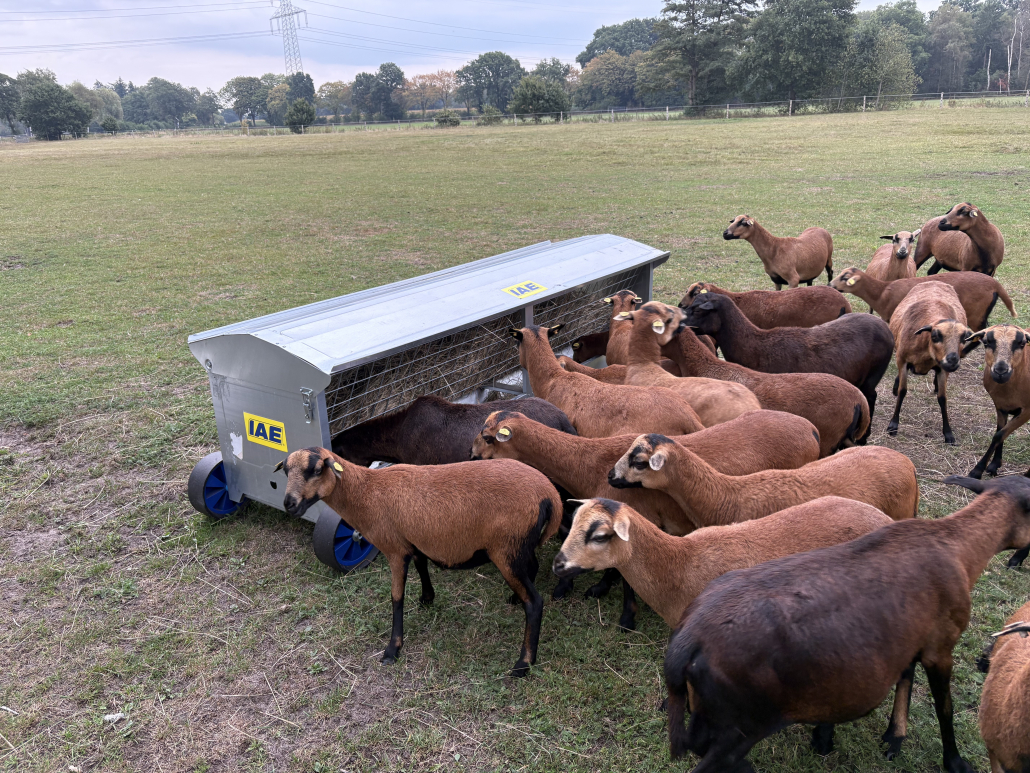In Hobbyschafhaltungen werden die Tiere oft das ganze Jahr über draußen gehalten. Dabei ist es wichtig, dass den Tieren Heu trocken und dosiert zur Verfügung gestellt werden kann. Dafür bieten wir drei Möglichkeiten: den einfachen Standard Sheep Circular Feeder, den Sheep Feed Cradle mit Dach, in den auch ganze Rundballen gesetzt werden können, sowie das Sheep Hayrack on Wheels, die fahrbare Heuraufe.